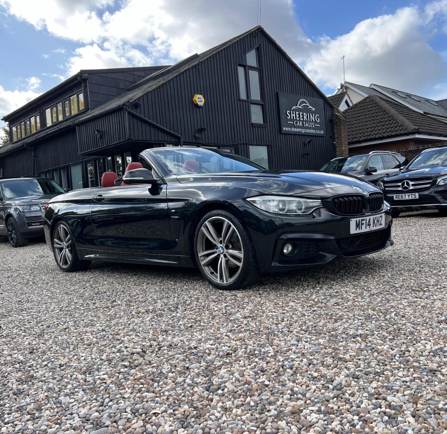 HERE WE HAVE THE MOST AMAZING BMW M-SPORT 4 SERIES CONVERTIBLE IN EXCEPTIONAL CONDITION THROUGHOUT WITH FULL SERVICE HISTORY, LONG MOT, 2 KEYS, PADDLE SHIFTS, CRUISE CONTROL, SPORT AND ECO OPTIONS, SAT NAV, FULL RED LEATHER SEATS, HEATED SEATS, ELECTRIC MEMO SEATS, AUTO LIGHTS, DRL LIGHTS, PARKING SENSORS, DAB, BLUETOOTH, AUX, USB, AIR CON, HEATED MULTI FUNCTION STEERING WHEEL, DRIVES VERY NICE, FINANCE AVAILABLE, P/X WELCOME